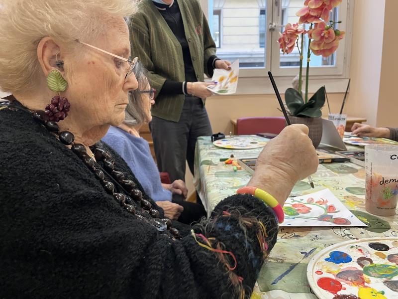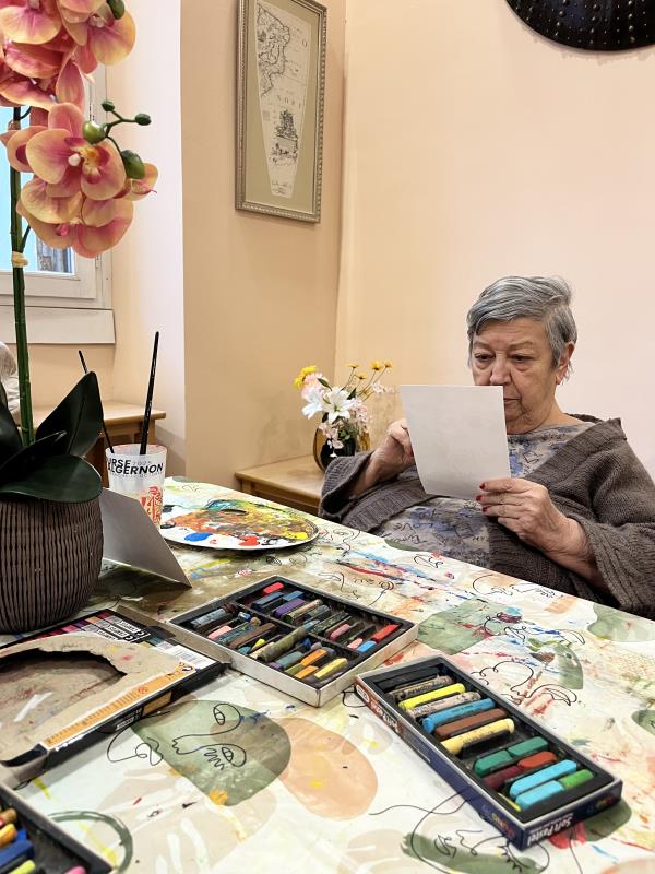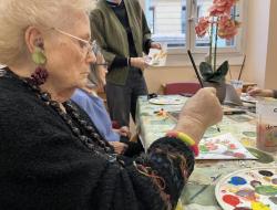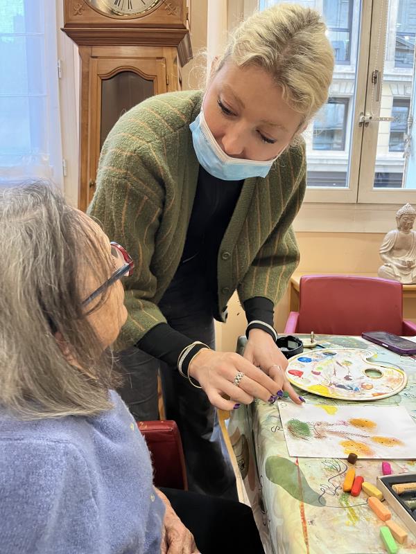 C'est avec un immense plaisir que nous recommençons, en cette nouvelle année, les ateliers de peinture avec l'artiste Coline Rohart. Après la réussite du vernissage, en décembre, nous sommes très heureux de proposer à nouveau à nos résidents ces ateliers qui permettent une stimulation cognitive, motrice et artistique mais surtout un temps convivial et de lien social !