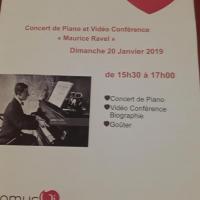 Publiée le 18/01/2019Dimanche 20 Janvier 2019. Conférence Vidéo autour de La biographie de MAURICE RAVEL. Cette conférence sera suivi d'un concert de Piano. L'après-midi musical sera clôturé par un goûter. Lire la suite